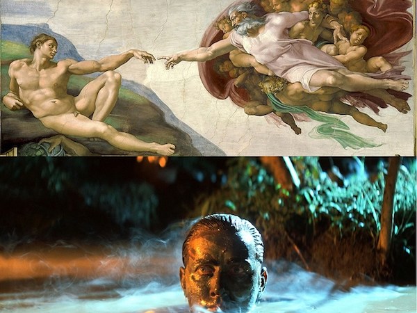 Premier panneau, l’ivresse de Noé/Willard. On peut imaginer alors que la grande fresque de Michel-Ange a inspiré le découpage du film de Coppola qui s’en servit comme d’un story-board. Dès la première séquence : l’ivresse du capitaine Benjamin L. Willard (Martin Sheen) fait miroir à celle de Noé, figurant sur le premier panneau du plafond en entrant dans la Chapelle, en hommage à Dyonisos, le dieu du vin et de la vigne…